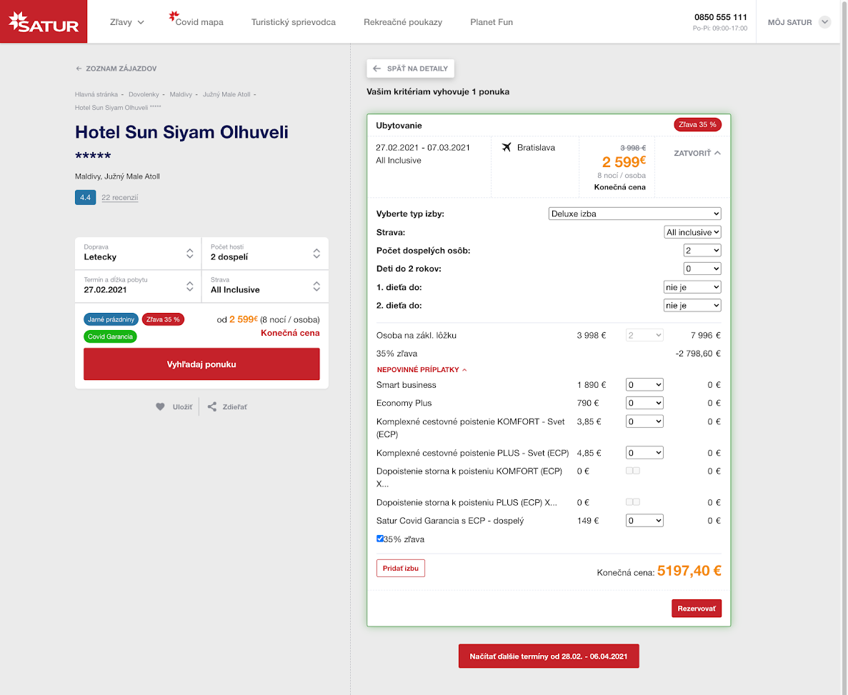 Všimněte si části formuláře "Nepovinné příplatky" na stránce CK Satur. Je vám jasné co je Smart business? Co je "Pojištění storna k pojištění PLUS (ECP) X…" a malé čtverečky napravo od této volby?