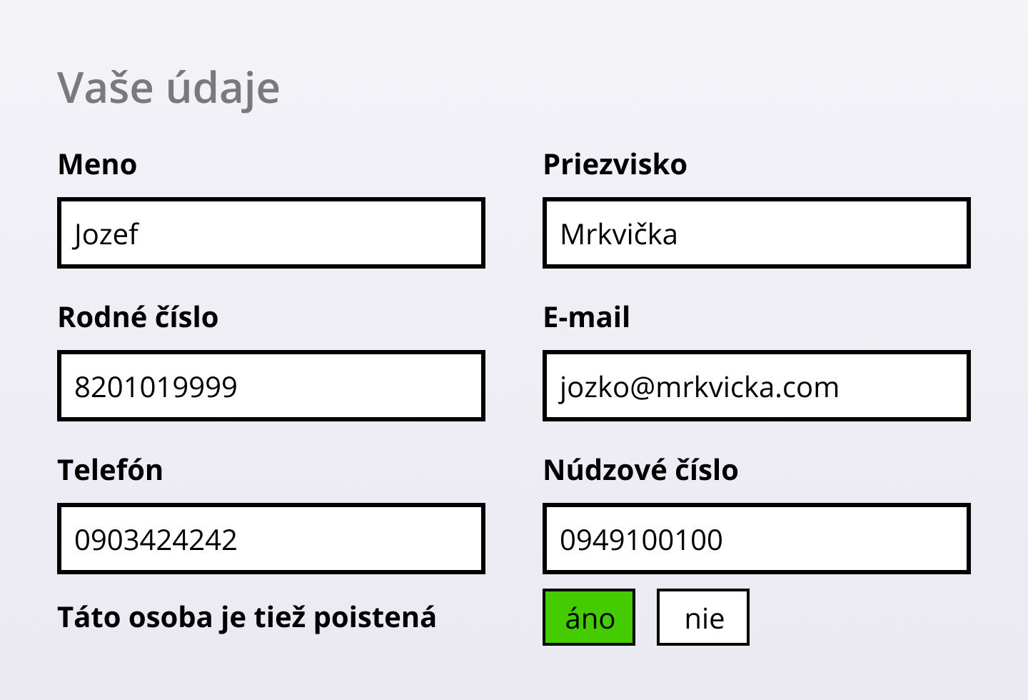 Jak byste odpověděli na otázku "Tato osoba je také pojištěna"? Kdo je vlastně ta pojištěná osoba? Je to ten člověk, který formulář vyplňuje? Nebo osoba, která vlastní nouzové číslo? Každá otázka vyvolává sérii dalších otázek, např. proč by můj nouzový kontakt měl být pojištěný nebo proč to pojišťovnu zajímá?