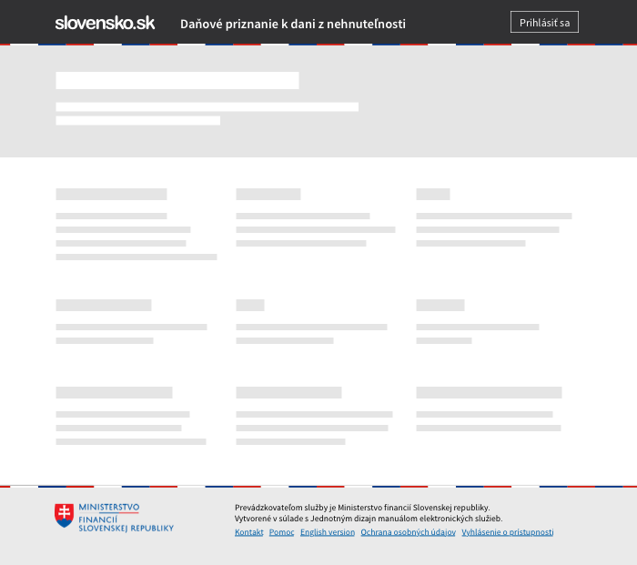 V rámci vytváření nového Jednotného design manuálu online služeb Slovenské republiky bylo třeba stanovit grafické ztvárnění hlavičky a patičky stránky, na které se bude občanům vybraná služba zobrazovat. Dva prvky, které musí uživateli hned vizuálně dát na vědomí, že je na oficiální “státní” stránce. Zároveň to měly být prvky snadno implementovatelné na stránku s online službami slovensko.sk.