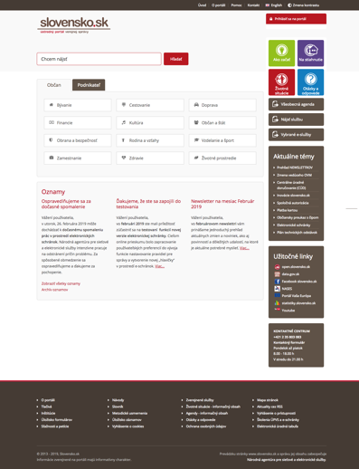 “Hmm” - řekla jsem si “ale jak, aby to vypadalo tak státně?” Současná grafika portálu slovensko.sk opravdu nevypadala vůbec tak, jak jsem si představovala na centrálu státních služeb. Zvláště hnědá barva a “kulaté” písmo.