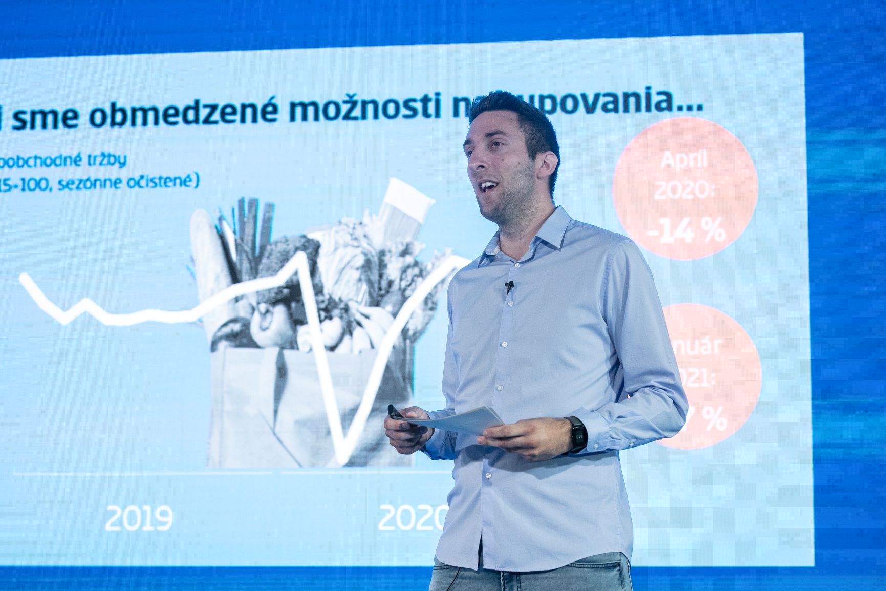 Jako první nám, Matej Horňák, analytik Slovenské spořitelny, představil ekonomický pohled na pandemií postižený rok, aktuální trendy i dlouhodobý vývoj ekonomiky na Slovensku. Grafy, které jsme mohli vidět, připomínaly dobrou předpověď počasí, takže se můžete těšit, že na e-commerce obloze bude svítit sluníčko i po skončení pandemie!