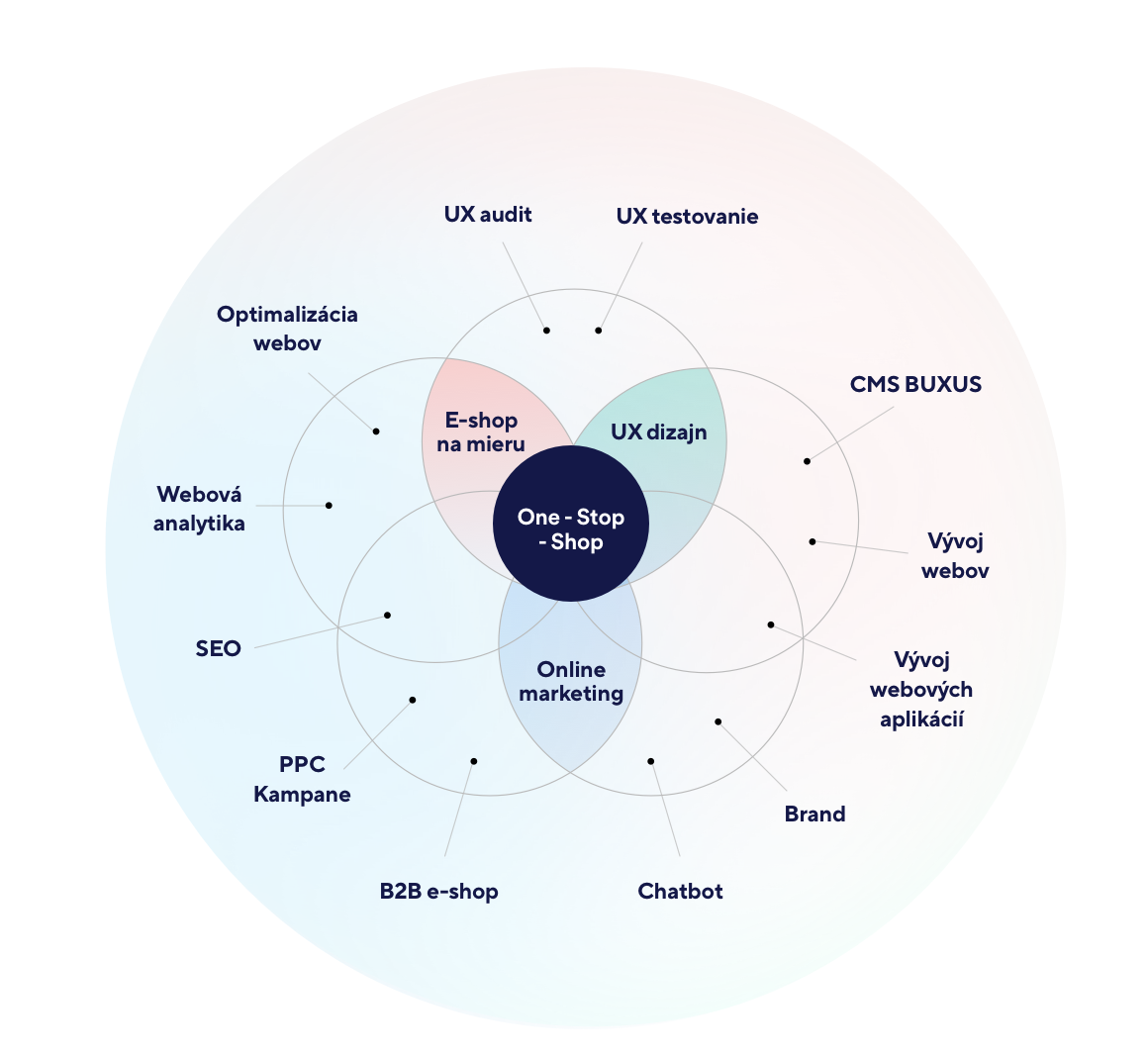 Jako ONE-STOP-SHOP tak přinášíme komplexní řešení od UX, přes programování či redakční systémy, až po online marketing a poradenství pod jednou střechou. A posouváme se, opět jednou, o skok vpřed po boku s Chatbotem či jinými produkty založenými na umělé inteligenci.