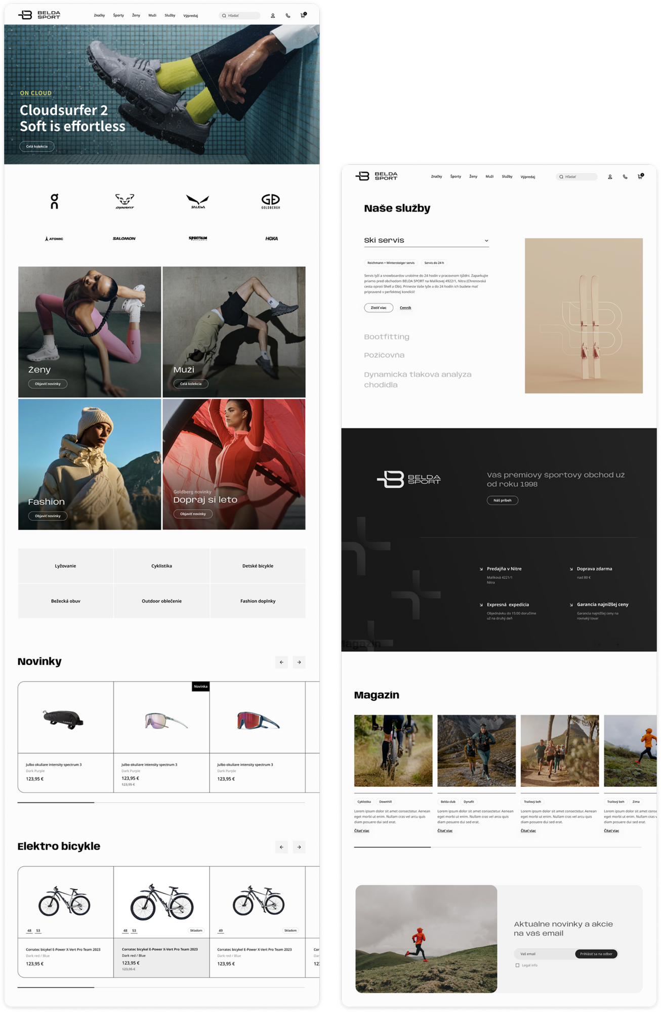 Belda Sport je etablovaný prémiový sportovní dům s dlouholetou tradicí. Klient si stanovil ambici: sladit vizuální identitu s novou, high-end pozicí značky. Původní vizuál již nekorespondoval s kvalitou produktů a exkluzivitou kamenného obchodu.